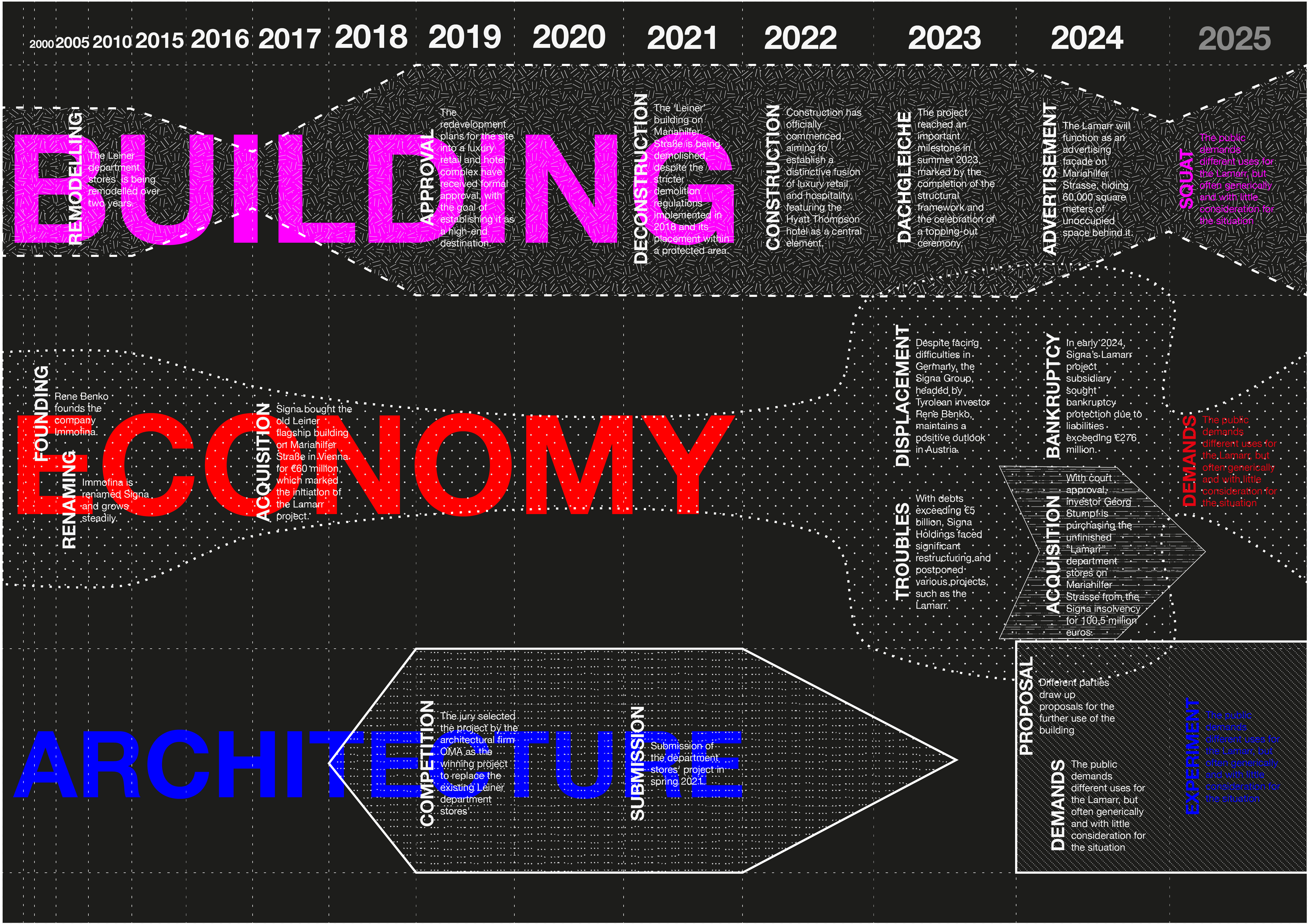 In 2017, René Benko’s Signa Holding acquired the Leiner flagship for 60 million euros under unclear conditions. This investment in one of Vienna’s busiest shopping streets marked the beginning of a conversion. The existing building was to make way for a luxury consumer and hotel complex. Despite the stricter demolition laws introduced in 2018 to protect the historic cityscape, the Leiner building was demolished - a move that sparked criticism of the lack of enforcement of these regulations.